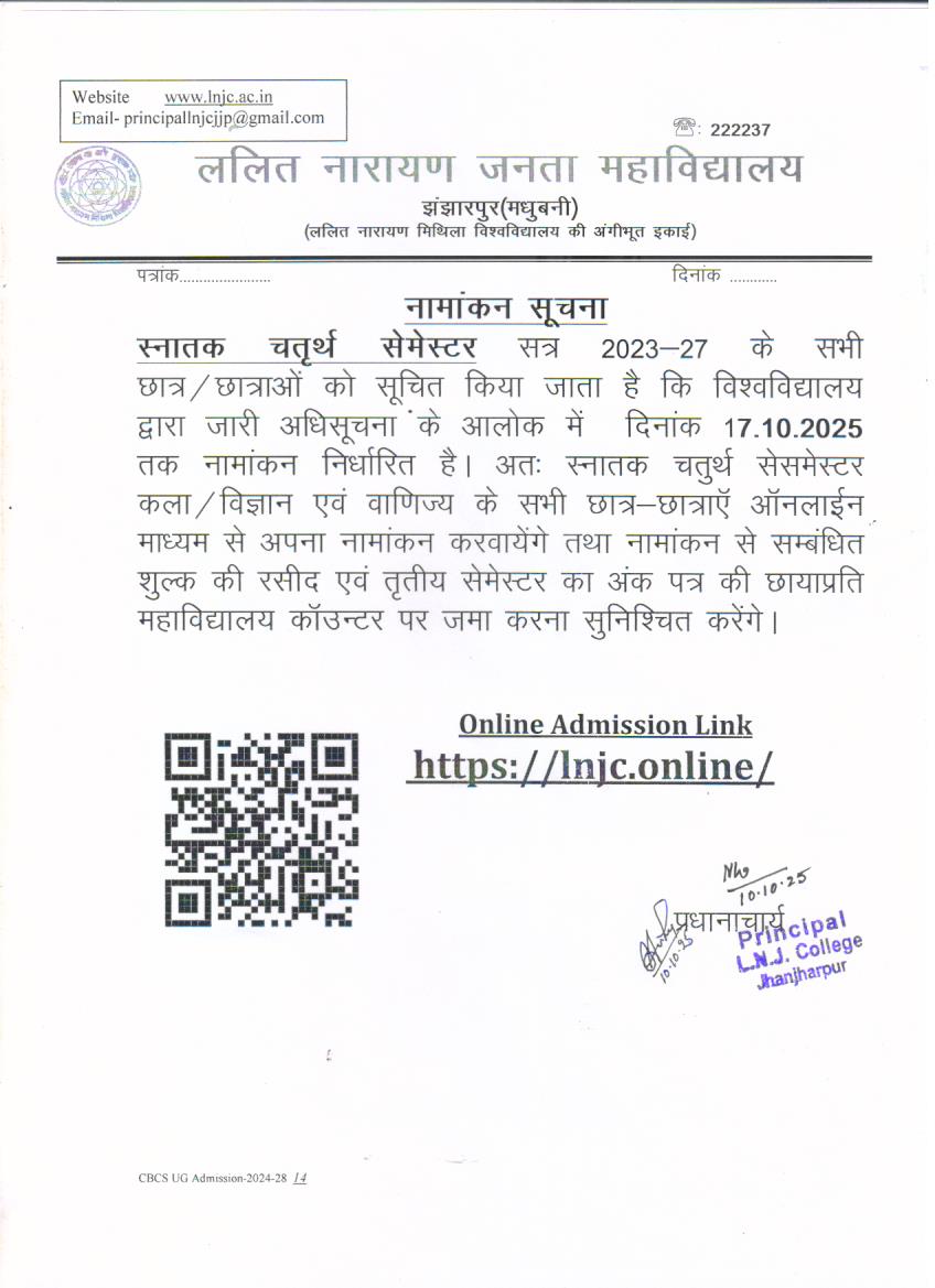 NOTICE REGARDING DEGREE 4TH SEMESTER ADMISSION (2023-27)